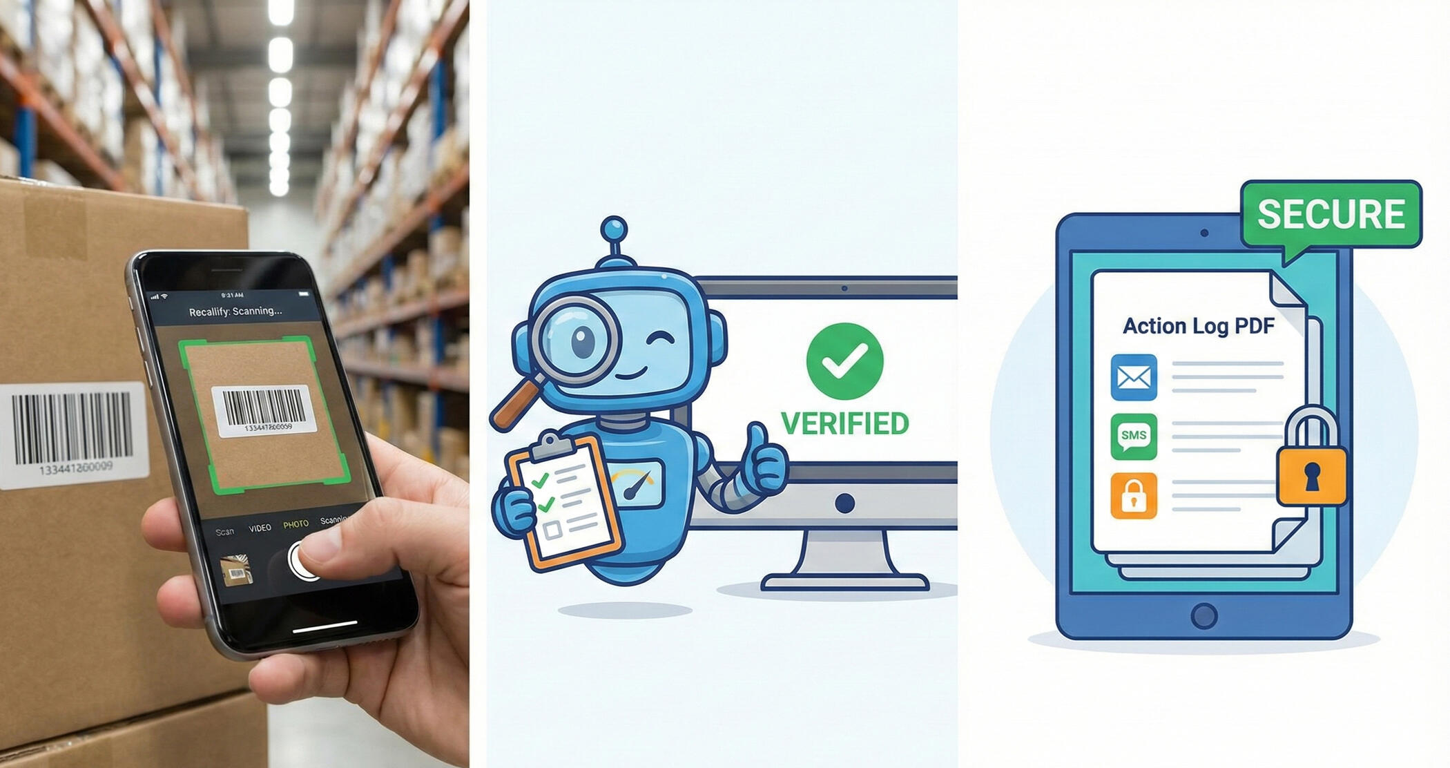 Alerts only when it’s in your inventory.Recallify matches official recalls (CPSC / FDA / USDA / NHTSA) to your exact brand / model / UPC / VIN, sends instant Email/SMS, and auto-generates a one-page Action Log PDF for inspectors.